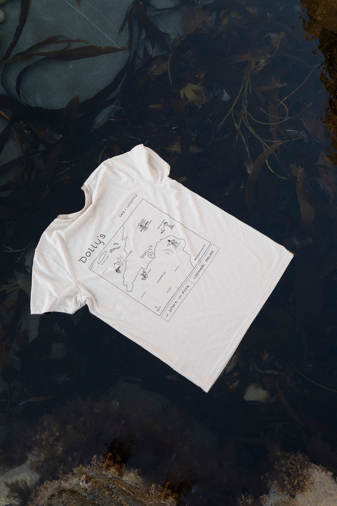 Our unisex Dolly's Map T-shirt comes in our signature cream colour. Artwork on the back is by local designer ODYSEA Design.